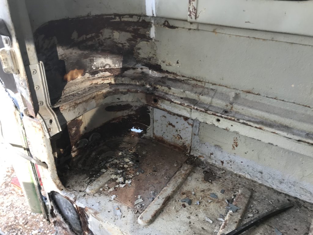 En gros, découpage de toutes les parties atteintes par la rouille, et gros traitement a l’antirouille.