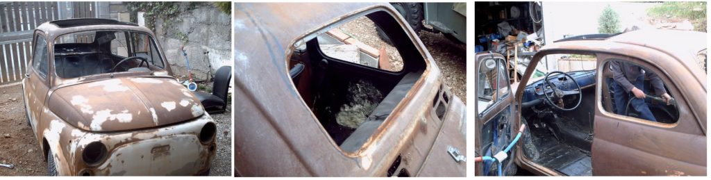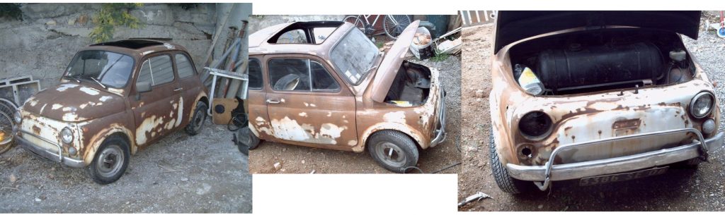 Tout d’abord une Minicomtesse (que je possède toujours), puis deux, un triporteur….et … je tombe sur une annonce d’une fiat 500, a un prix défiant toute concurrence. Une bouchée de pain. Nous sommes en Avril 2007.